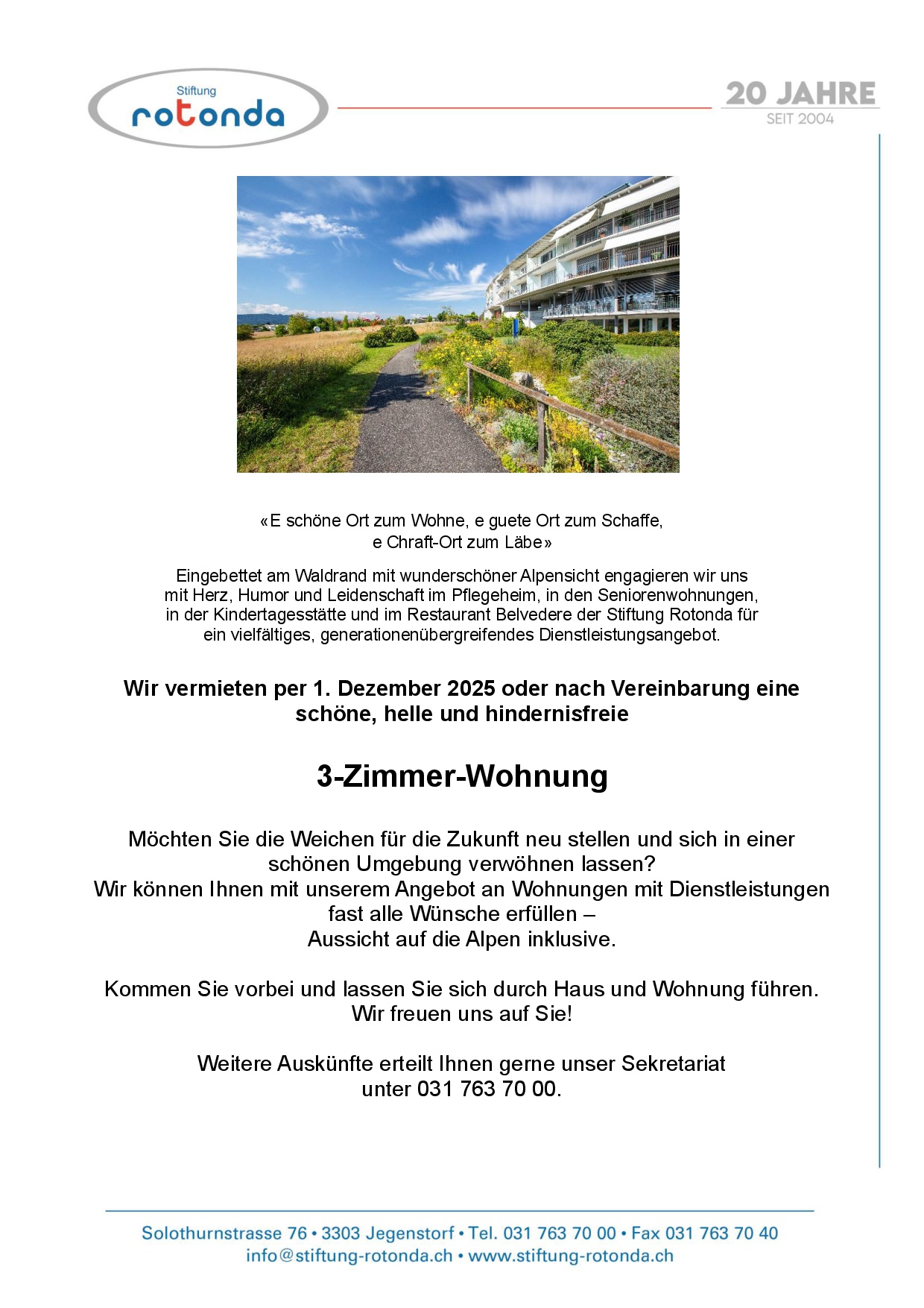 Besuchszeiten Pflegezentrum: täglich von 10.30 – 20.00 Uhr