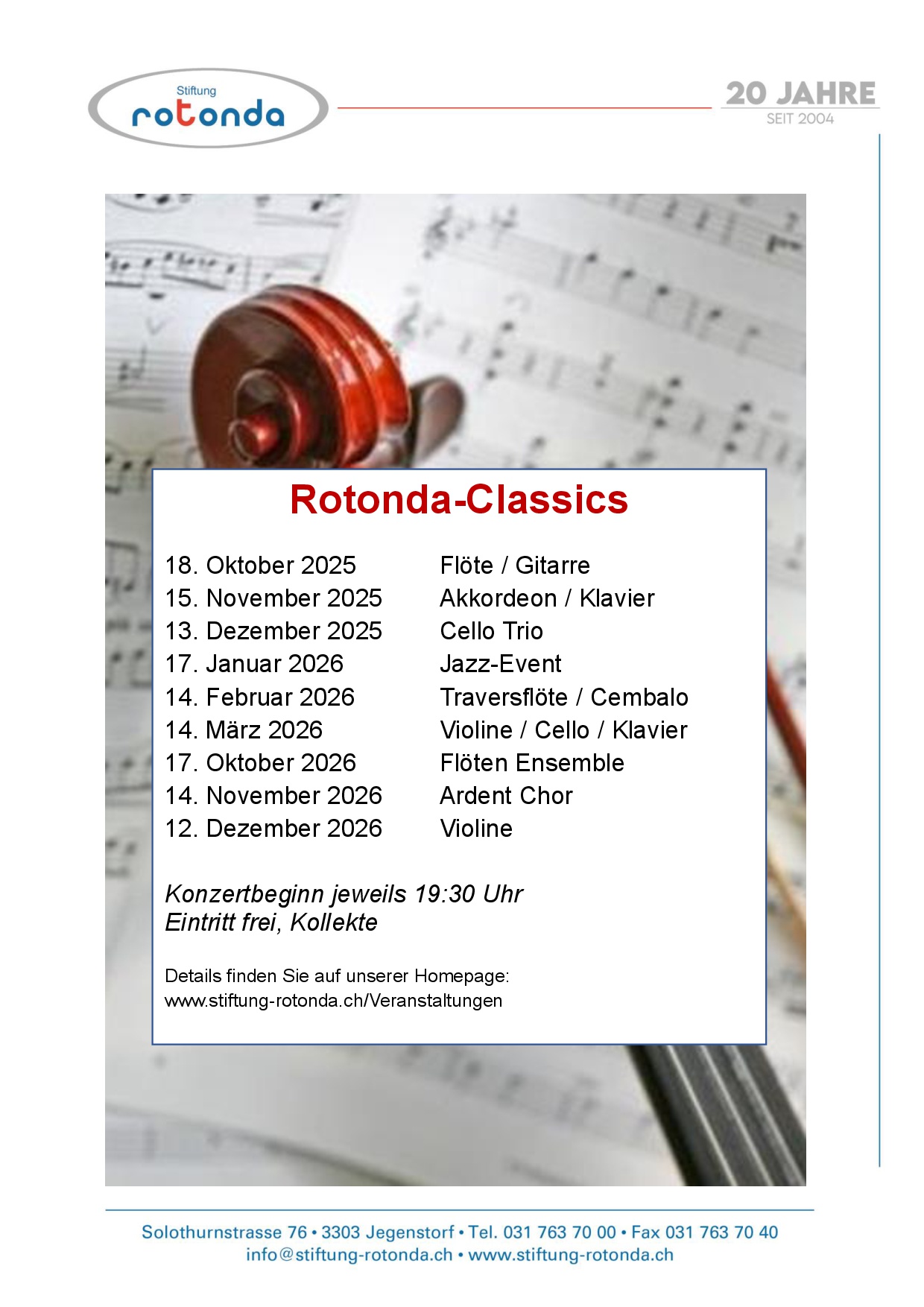 Die Rotonda bietet ihren Bewohnerinnen und Bewohnern sowie auswärtigen Gästen ein abwechslungsreiches, attraktives Konzert- und Ausstellungsprogramm an.